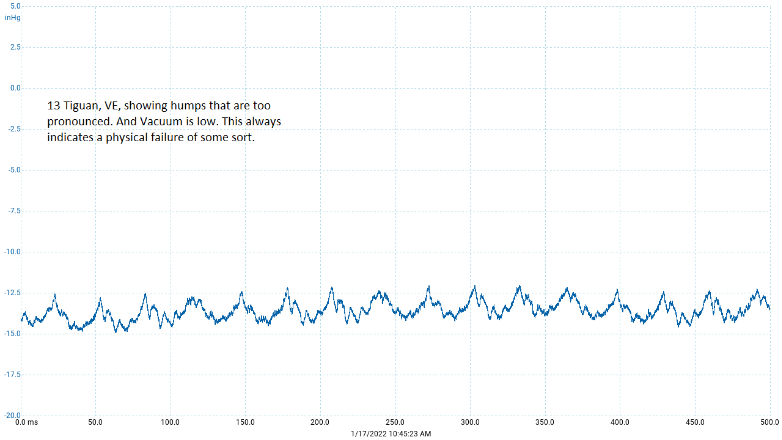 → Consistent peaks = equal cylinder contribution = engine is mechanically sound.