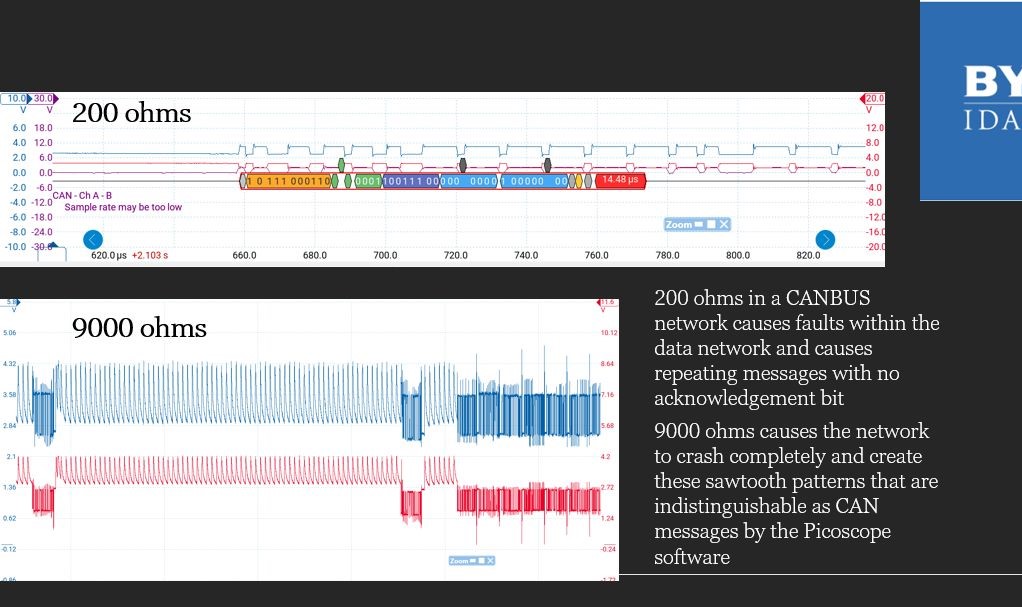 CAN Bus and communication network analysis — verify module communication, identify bus faults, termination issues, and network integrity. When modules can't talk, nothing works right.
